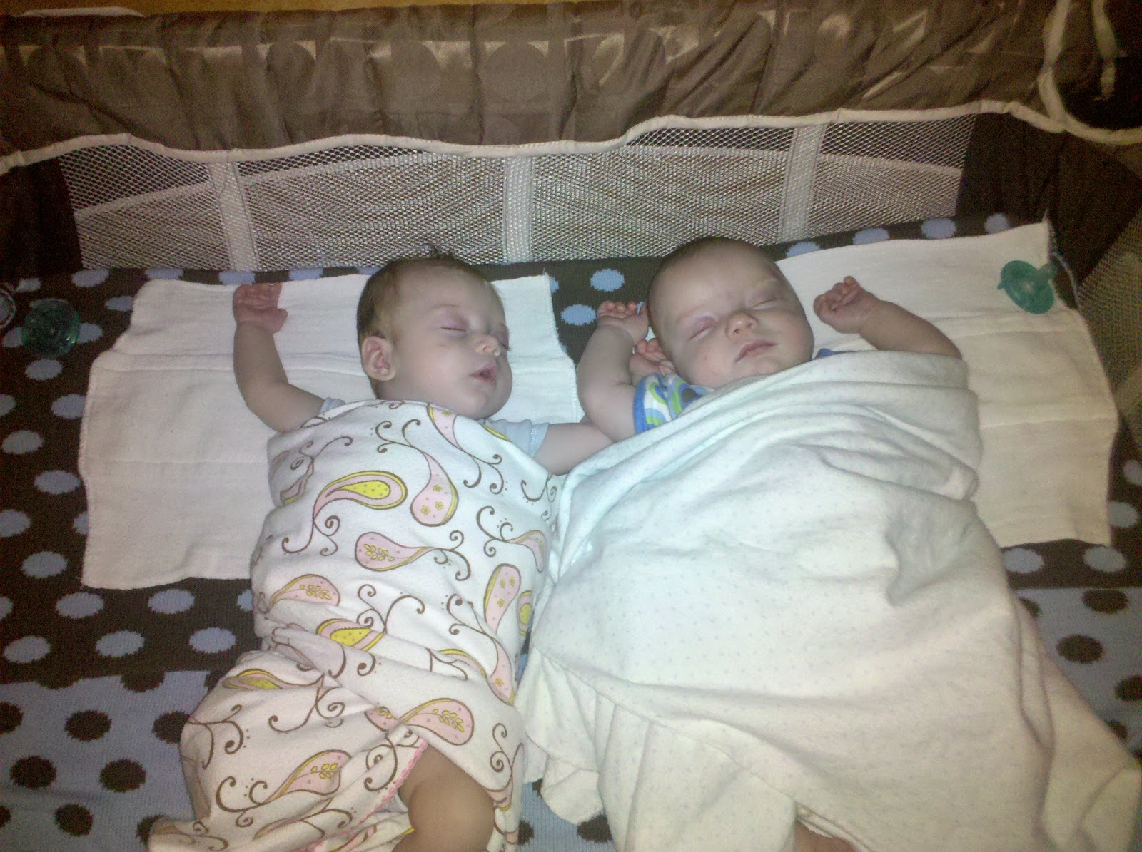 These are when the twins were just a few months old and they were sound asleep in their little play crib. I miss these days when I could just stare at them as they slept.