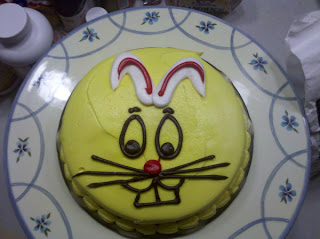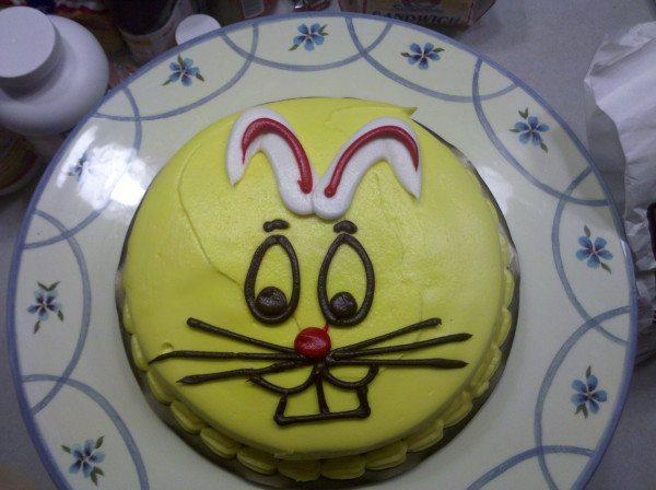 In addition to the cupcakes and other assorted bake goods, I had my first attempt at actually decorating a cake. I think it turned out pretty well and I almost cried when I had to cut into it to serve it. Poor Mr. Easter Bunny. You were so, so pretty.