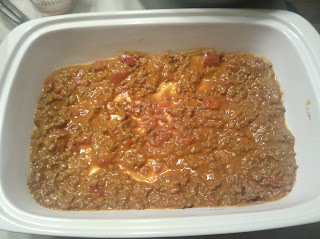 In a large saucepan over medium heat, begin to brown the ground beef (Don't be afraid to substitute for ground turkey or as Annie's Eats did turkey sausage, I'm just not a fan of turkey).